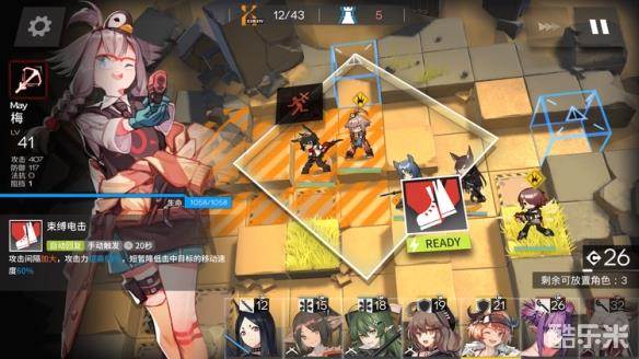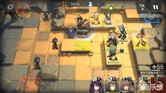 初次进入游戏,会对于游戏的基础操作有引导教程关卡。战斗画面布局较为简洁,由左上往右下看,左上方齿轮点击调整设置,右上方为调整速度(1倍速或者2倍速)以及暂停按钮,最下面一行为可部署的干员头像。