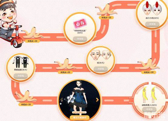积攒香蕉皮能领取许多限定奖励,不仅有新款脸型呵,还有战斗小鸡、黑熊萌裤,以及男玩家期待已久的小裙子蓝语不惊,安排!