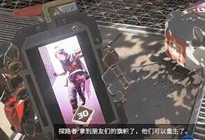 说到这个重生机制,相信关注吃鸡类的小伙伴们都不陌生,那就是《Apex Legends》。在Apex中,队友死亡后,还活着的队友可以从队友盒子里获得下图这张“旗帜”,然后前往重生信标处将队友复活召唤。