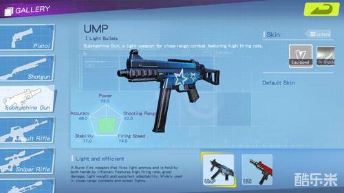 冲锋枪精准度比较低一些,适合中短距离射击,攻击力一般。