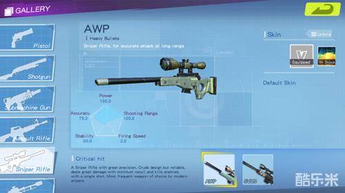 狙击步枪射程远,伤害高,但是攻击速度慢,一般配合步枪使用。