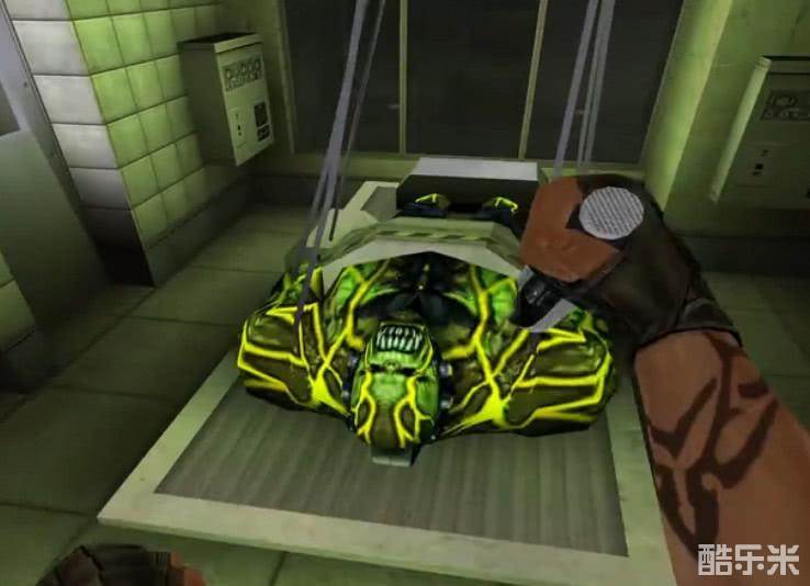 而且在这张实验室地图当中,还会有很多的绿巨人,实验室里被关着,比如上方图片当中的这一只。对于生化模式背景故事有不了解的玩家,应该知道生化幽灵是佣兵变异所产生的一种结果,而为了能够制止这种感染效果,便开始对绿巨人进行实验,而地点就在这个实验室当中。