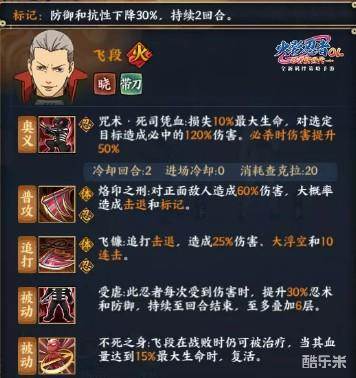 飞段的普攻能大概率造成击退和标记,为队伍起手追打提供了便利。因为受到伤害后提升忍术以及治疗复活的全新机制,让看似同归于尽的奥义拥有极高的破坏力!