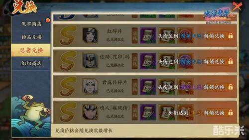 *只有在拥有大蛇丸SS、纲手SS、自来也SS中至少1位时,才将解锁万能碎片兑换功能。