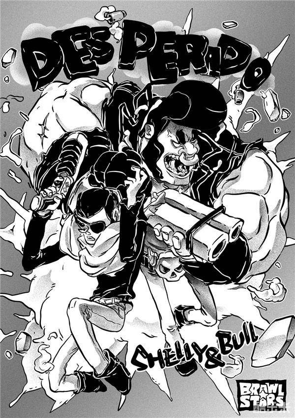 说到黑科技套路,《荒野乱斗》还真不少呢!比如上面这幅插画,正是称霸吃鸡模式的“草丛两兄弟”公牛和雪莉,跟基友双排开黑玩吃鸡模式,用他们俩跟真是所向披靡,因为公牛和雪莉的的英雄特性都是:“敌人距离越近,伤害越高”,所以这两兄弟躲在草丛埋伏敌人,屡屡得手,海报中爆炸浓烟的背景正是他们暴力输出的意象表现呢。