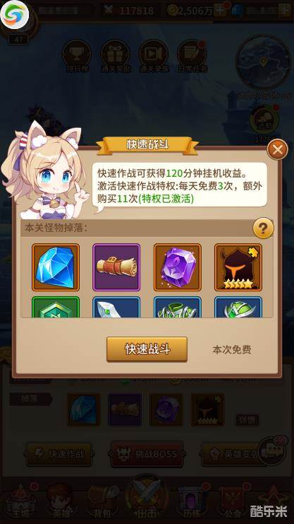 在出击界面选择[快速作战],直接获得2小时的挂机收益,试过的都说好