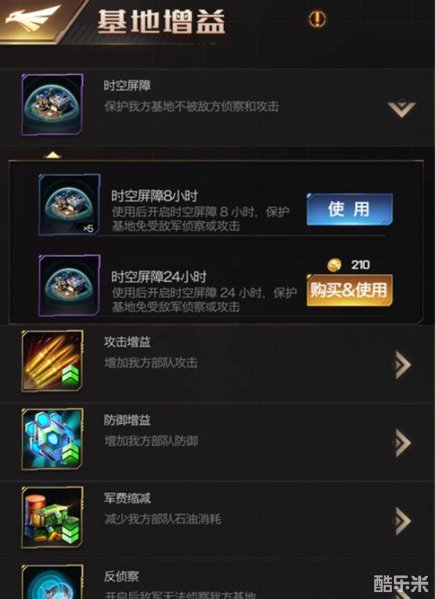 如果建筑工厂比敌人要低6-8级,兵种低两级,城内的驻防部队在活动时就是对方眼里的积分。这个时候我们还是直接开启【时空屏障】安心发展,或者用光内资源,撤空基地内兵力来避免更大损失。