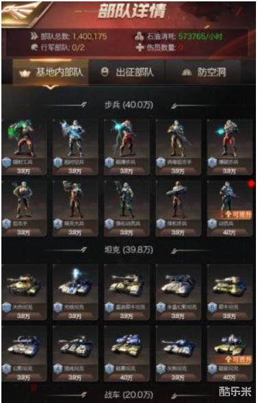 驻守部队的兵种数量搭配,决定着基地综合战斗力,不同等级有着不同的驻防兵种搭配,但总的来说高级兵种越多越好,可以降低战损,在发展完高级防守兵种后,也可以发展提高对方战损的兵种。