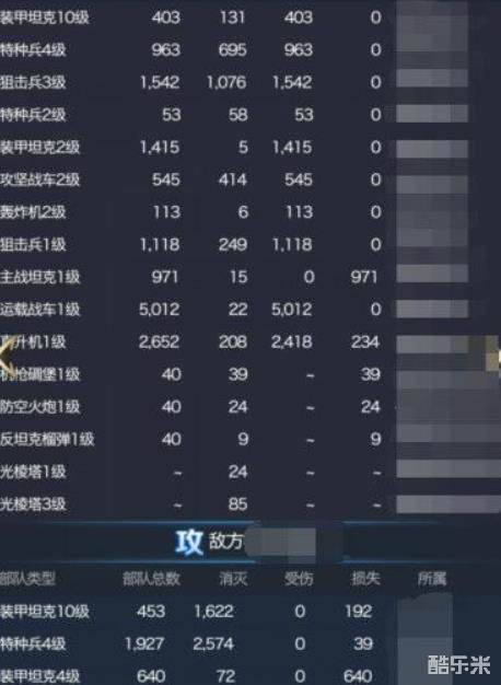 从图中防守失败的战例中可以发现,在低等级的情况情况下,特种兵的输出能力并不突出,主要原因有2点:1.低级兵属性较低,没解锁3技能,无法触发额外伤害。2.依赖前排来保障输出,其站位在狙击手站位之前,前排覆灭后,会被优先打击,数量减少后输出能力不足。