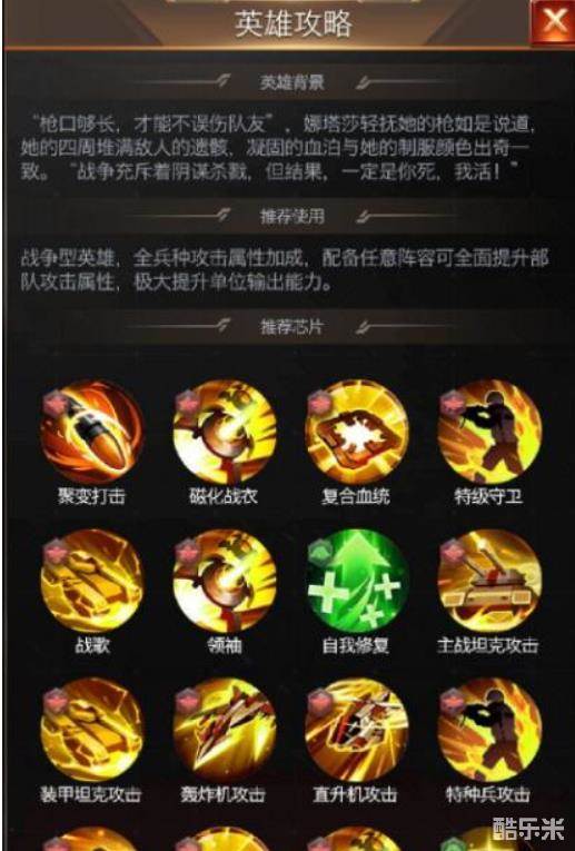 但是,毕竟这只是主流玩法,有些玩家还是更喜欢单兵种阵容,那么这里我以步兵阵容为例子,娜塔莎就可以搭配连击步枪,装甲坦克生命,特种步兵攻击技能,这样子,可以适配自己喜欢的玩法,在集结进攻时候,相比较全属性技能方式,也有一定的相对优势。