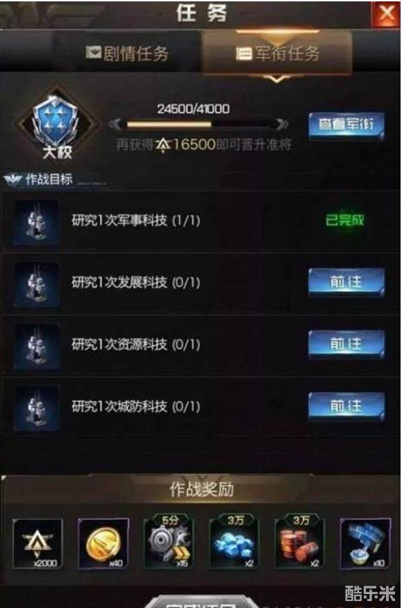 优先做军衔任务,升级军衔,因为军衔加强了各类属性,以及最重要的出征量问题,并且出征量与游戏内道具扩编军队的效果是可以叠加的。