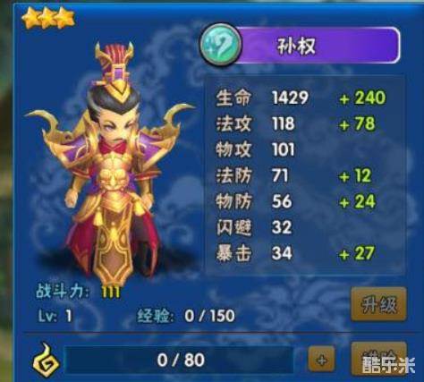 孙权是一个三星品质的紫色法术输出型武将,在技能方面上,