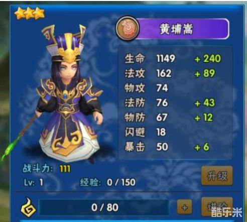 黄埔嵩是一个三星品质的紫色法术输出型武将,在技能方面上,