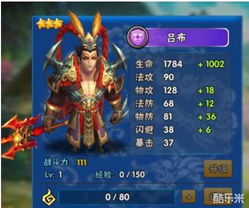 吕布是一个三星品质的紫色肉盾型武将,在技能方面上,