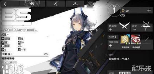 精英1后:解锁了新的技能和天赋,攻击属性还是281,但是cost变成了20。此时我们可以继续提升等级让干员属性变得更高。