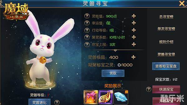 若想在榜单上占据一席之地,玩家需要通过活动期间获得的的灵兽核晶喂养灵兽,对其灵能值、幸运值、行动等级、聚灵系数以及挖宝上限进行养成,全方位提升灵兽的探宝能力、探宝效率及宝藏品质。那么如何获得更多的灵兽核晶呢?玩家每天可两人组队前往万兽灵窟参与兽神考验,寻找弱点击败荒兽;又或是参与猎宝谜题或鹿角兽大盗活动,以智力与战力赢取额外灵兽核晶战利!
