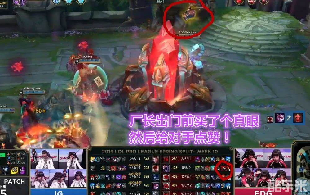 虽然Rookie冰女开局崩了,但游戏中期几波完美入场实在非常关键,撑住了逆风局势,让JKL薇恩拥有收割空间。虽然EDG阵容打团更占优势,但是他们被IG战队强大的韧性所震慑到了,团战总是打不赢。后来EDG战队不想冒险,选择偷家,却差了那么20滴血,功亏一篑被翻盘。此时EDG队员都非常沮丧,但厂长蝎子复活出门的时候还多买了个真眼,他不到最后一刻不放弃。最后EDG基地被摧毁,厂长还不忘为对手点赞,称赞IG战队打得好。