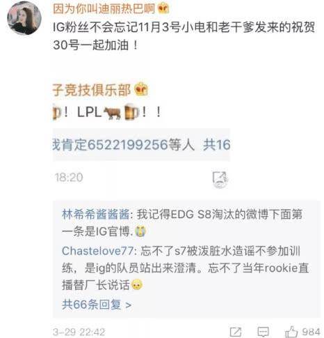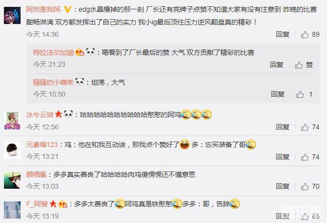 其实EDG战队与IG战队之间的关系确实非常好,因为两队的巅峰处于不同时期,彼此之间没有冲突,还一直互相帮助。比如EDG在S7时期被造谣不集训的时候,IG队员站出来澄清,Rookie直播为厂长说话。后来IG战队夺得S8冠军,EDG官博也是第一时间赶来留言祝福。