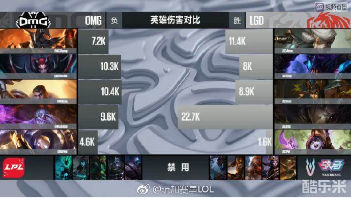 利用大龙buff,LGD分推将OMG三路高地拿下,并在下路的开团完成一波完美1换5团战,拿下了第二局比赛的胜利,将比分扳平保留了晋级季后赛的希望!