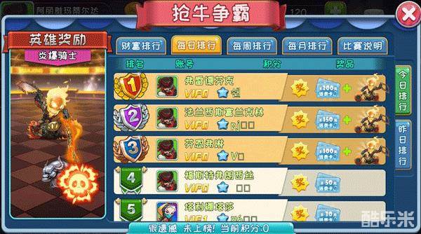 抢牛榜是一个十分具有挑战性,进入榜单得牛仔们不仅可以获得大量赏金以,更有机会赢得百元话费以及专属皮肤哦~玩家可以通过进行休闲场捕捉动物们,通过捕捉精英怪以上级别的动物,可获得榜单积分,动物级别越高,获得的积分就会越高;当然了,套索倍数也是最为重要的,要想得更高得积分,就要看你得套索倍数哦~