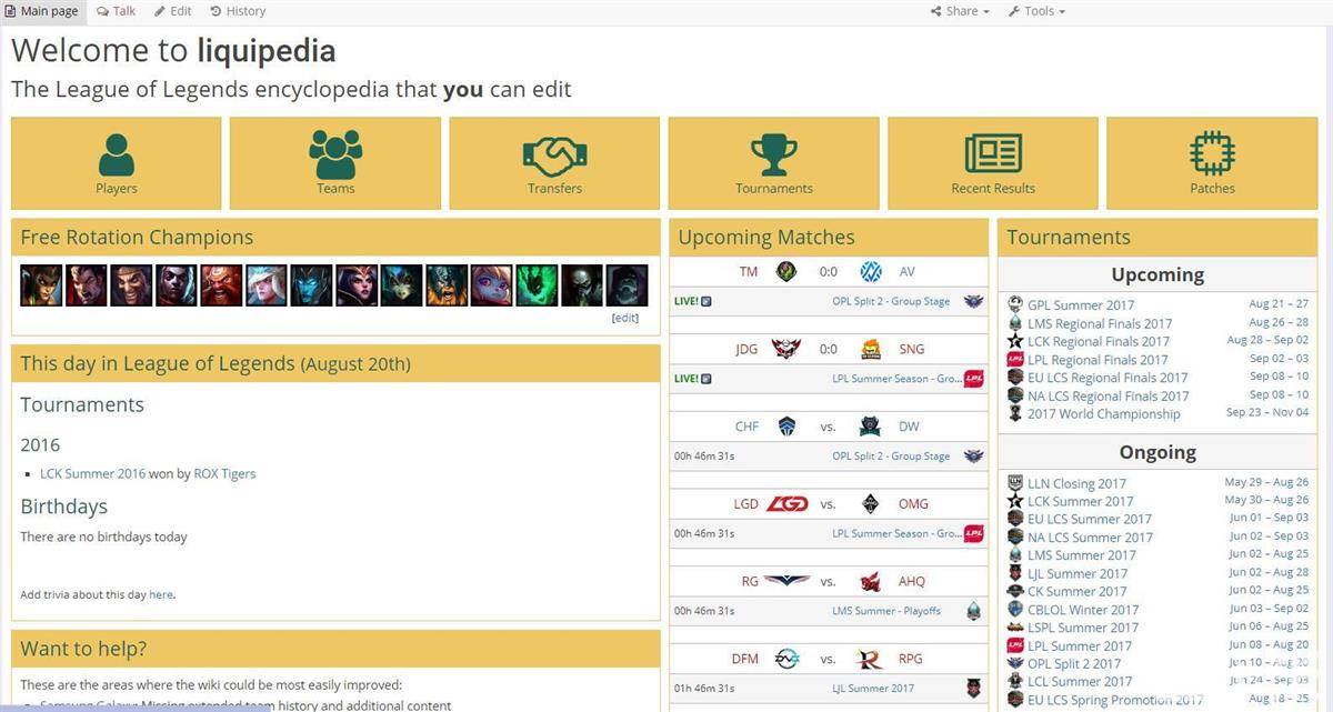 Liquid战队完全有能力可以打造一个完善的Liquipedia,他们在最近刚得到了迪士尼的资助,昨天官网放出了他们要从头开始打造一个全新基地的构想,在上周早些时候,Liquid战队的Dota2分部也是夺下了第七届国际邀请赛的冠军,获得了将近一千万美元的奖金。虽然Victor Goossens没有透露英雄联盟维基的终极版本具体上线时间,但相信会在最近完成,目前我们发现已经初有规模,包括主流赛事的时间。一旦Liquipedia添加了英雄联盟板块,也是更加方便全世界的玩家查询英雄联盟相关赛事资讯。