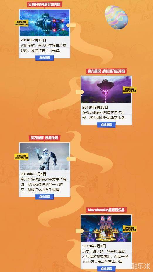 每一个经历过的彩蛋,都有专属的卡片。在活动期间,登陆游戏,重新生成堡垒轨迹图后,就能补领已经错过的奖励!