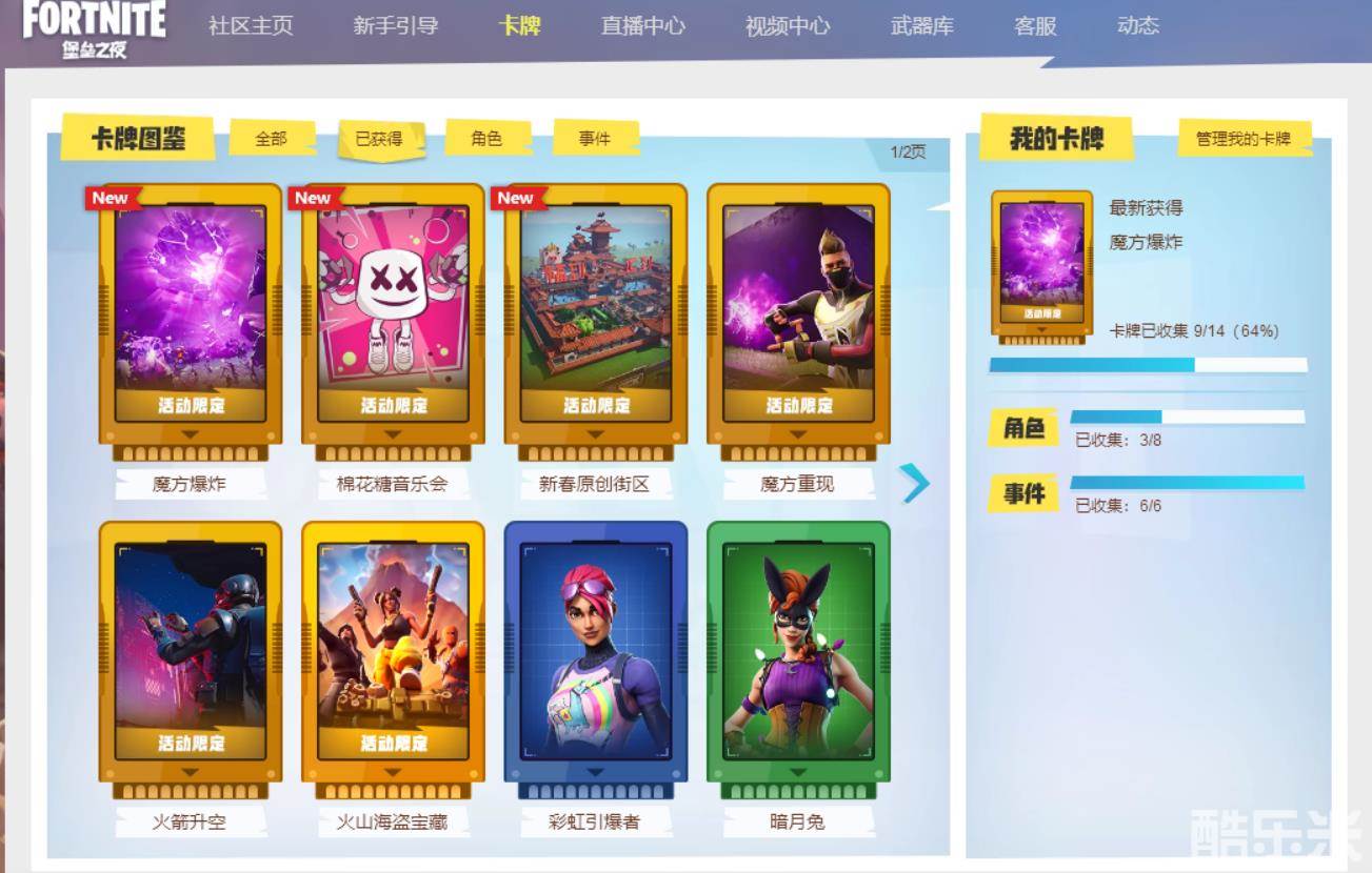这些卡牌都是你堡垒骨灰粉的象征。看我一张张金色活动限定纪念卡牌,有木有很羡慕!