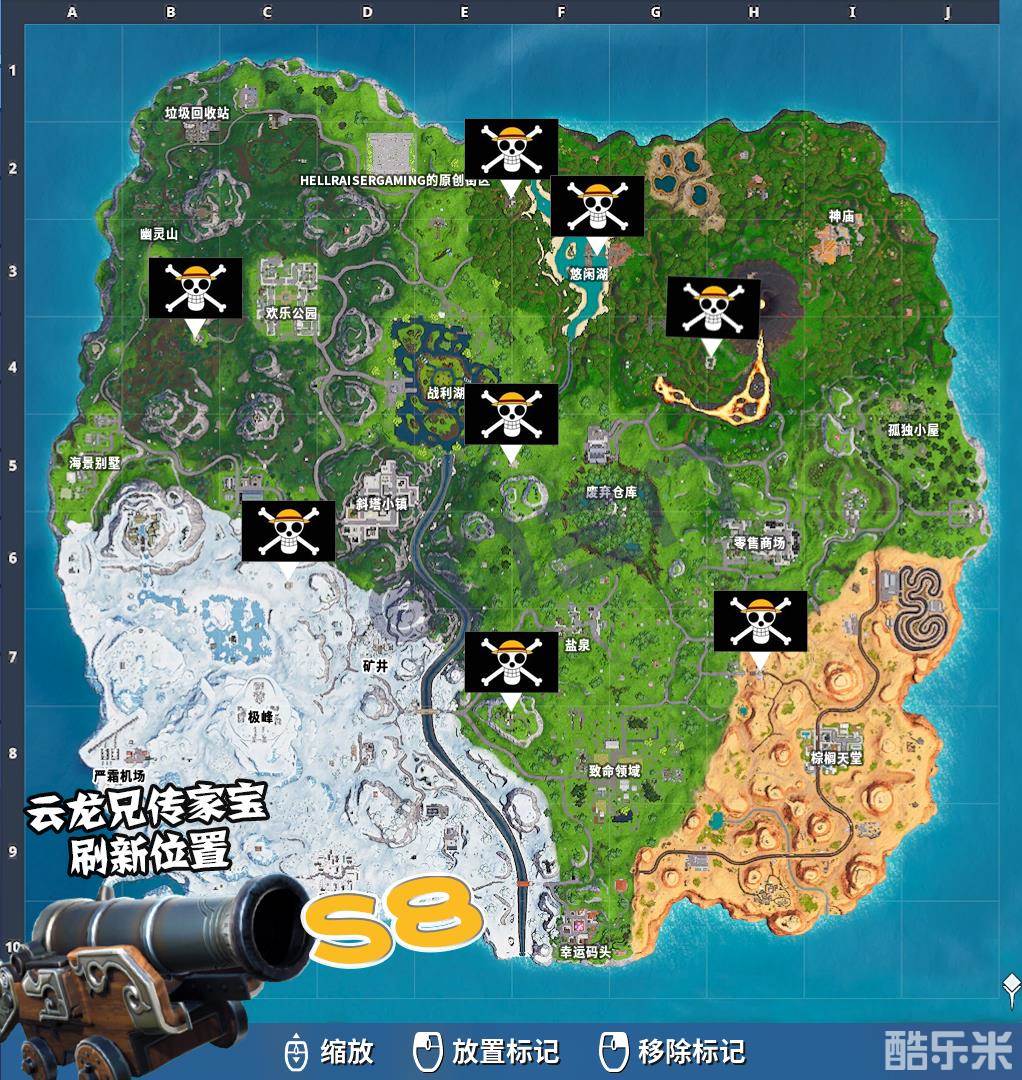 海盗加农炮的刷新位置三门给大家标注在图里了