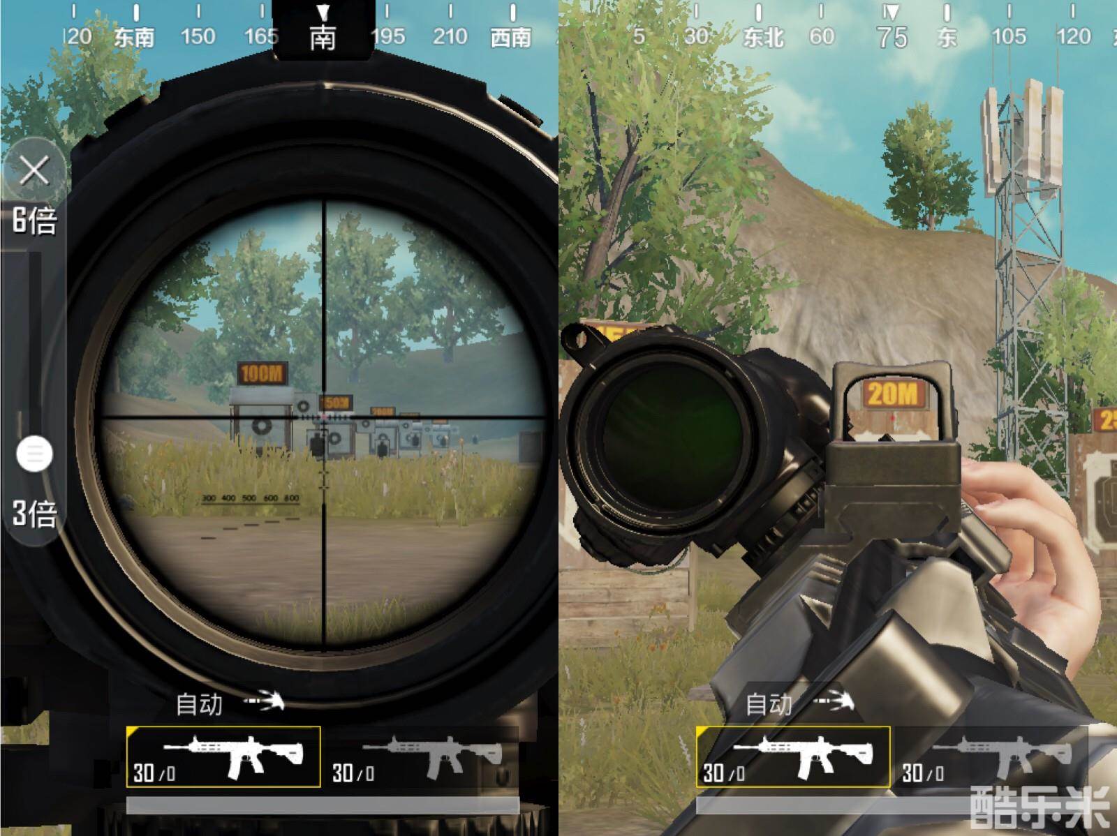 最后再看到高倍镜,如果是测瞄准镜搭配中远倍镜后是锦上添花的话,那搭配了侧面瞄准镜的高倍镜可以说是如虎添翼,有了质的飞跃!装备了6倍镜后的M416能够轻松看清100米开外的视野,并且6倍镜还有一个非常强大的功能,可以在3倍到6倍之间自主选择变化视距,如果再搭配上侧瞄准镜,就可以让我们的枪械拥有了一个可近可远的射程,让我们在所有时期都驰骋鸡场。简直好用的不行!