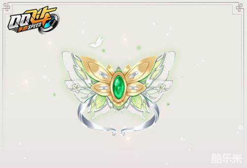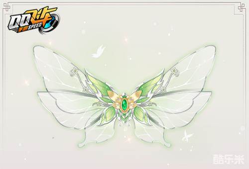 轻薄如纱的羽翼中闪烁着浅浅的流光,低调而优雅。片片绿叶重叠,朵朵小花悄悄开放。而正中间镶嵌一颗通透的绿宝石正是点睛之笔,让羽翼显得高贵华丽又不失自然色彩。挥动羽翼,穿过自然,与万物融为一体。