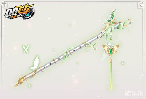 纤长的萧上缠绕着细细的藤蔓,绿叶在上面源源不断地生长,象征着勃勃生机。萧的末端挂着一串玉饰,展现了持萧人的精致雅趣。一曲演奏下来,森林万物全部沉浸在这美妙的音乐之中,可以称得上万籁此都寂,但余玉萧音。