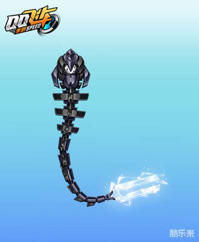 纤细的机械骨节交相连接,活动式的契合方式增加了尾饰的灵动感,末端的三叉造型独特凌厉,配上四周的白色光效,令人不寒而栗。