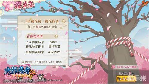 游戏全新开放的“樱花祭”活动参与方式非常简单,玩家只需收集樱花勋章即可,收集的樱花勋章越多,最终所获取的奖励就越丰厚。目前已知“樱花勋章”可通过两种方式获取,一是每日通过“樱花祭”界面领取,领取的数量则和“樱花树”的等级有关,等级越高的“樱花树”每日产出的“樱花勋章”就越多。玩家需要每天登录游戏,点击“樱花祭”界面的“樱花”进行签到,这是唯一提升“樱花树”等级的方法。如果玩家能将“樱花树”提升到5级或10级,那“樱花祭”活动界面将会漂浮着大量的樱花,让玩家不出门也能欣赏到樱花盛宴。