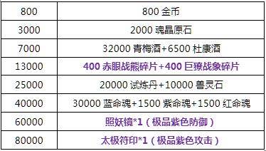 【活动内容】活动期间,游戏内累计充值达到对应金币,即可获得对应奖励;所有商品绝对超值,不信你自己看。相中哪个千万别手软!因为一犹豫也许就不知道何时能再见了。