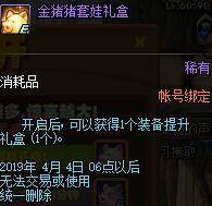 累积奖励的前几个奖励可能并不诱人,但是最终奖励还是不错的,累积开启第五层三天就可以领取一个金猪猪木质礼盒,开启后可以获得五个装备品级调整箱,累积七天可以领取一个金猪猪白银礼盒,打开可以获得一个装备提升礼盒(三个),累积十天可以领取一个金猪猪黄金礼盒,开启后可以获得一个海伯伦装备自选礼盒(一个),免费赠送一件海伯伦成品装备。