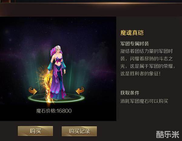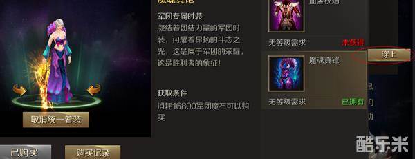 仅军团长才有权限购买军团服装。军团长即可消耗军团魔石购买军团外套。(具体操作:进入“军团”-“军团内政”,点击“军团外套”按钮,进入军团外套界面,点击“购买”按钮。)任何一位军团成员都可以前往“贡献大厅”,为军团捐献魔石。