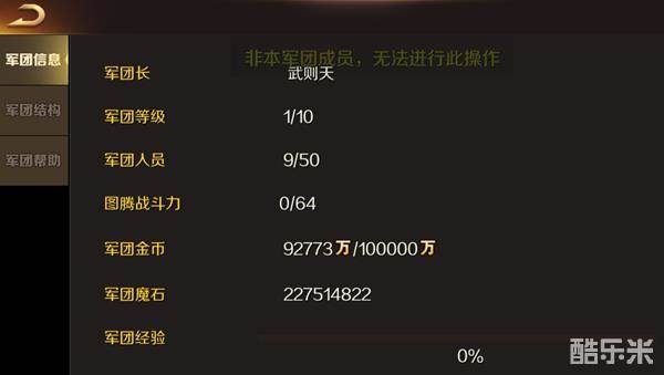 点击界面右下方“军团信息”就能显示军团的信息了