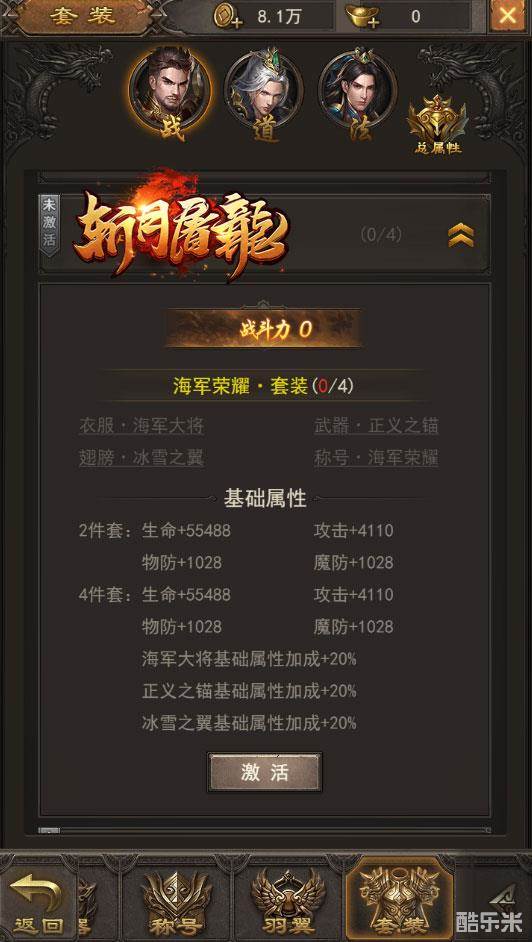 游戏中新增“时装套装”效果,玩家可以根据拥有的时装、翅膀、武器和称号来解锁相应的套装效果;点击激活相应的套装效果后,即可获得大量基础属性加成和高额的时装属性百分比加成。