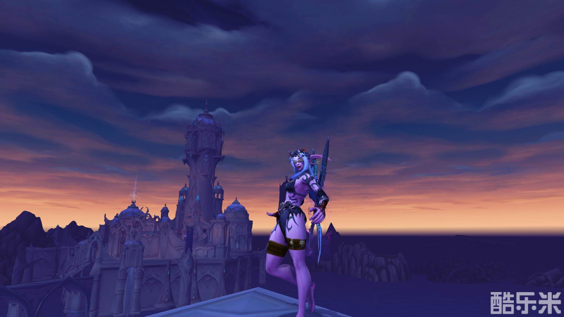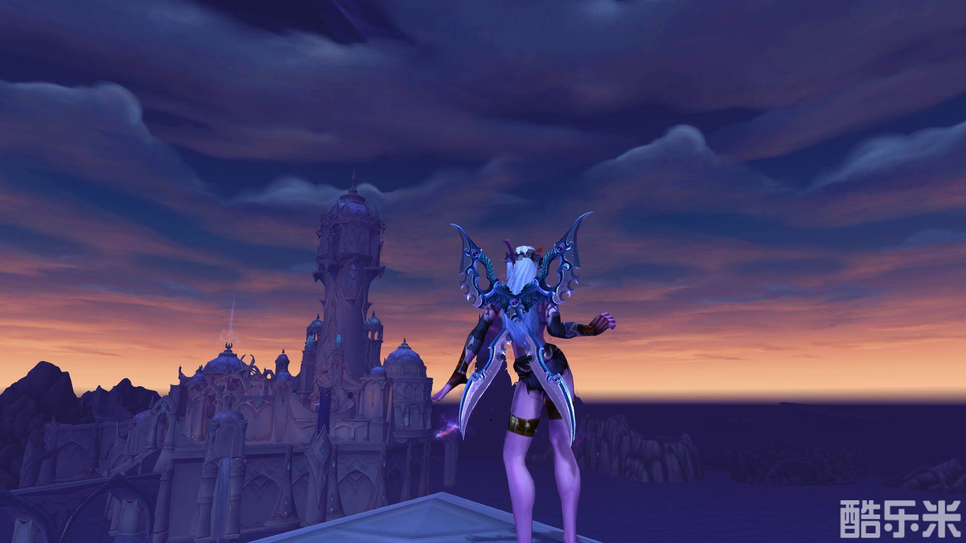 因为这是刚练起来的dh小号所以买不起魔钢长剑,就在已有的单手剑里面换了龙鳞,意外的好看啊!!!背在背上像一对翅膀,配上花环特别像花蝴蝶。