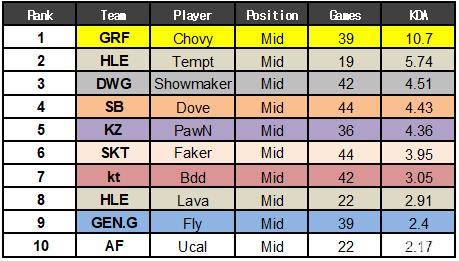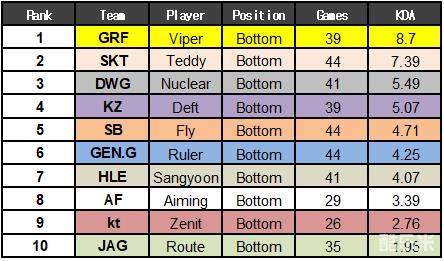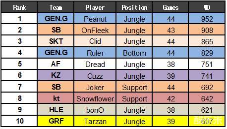 从1月16日开始到3月31日的韩国2019LCK常规赛结束后,拳头韩国公布了今年春季赛当中许多选手的数据。