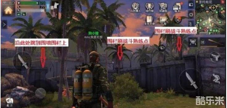 在双子岛和立山而岛均可通过射击海边、屋顶下、围墙下的怪物来获得大量战斗熟练度