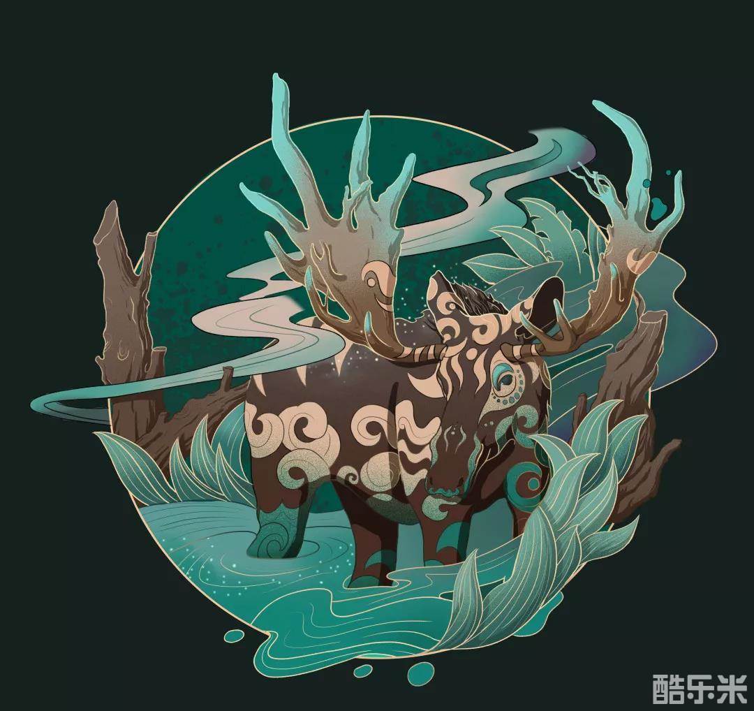 例如上图中井水犴以及斗金牛角部分,它们的标志性形象显得更加突出,这一特征的加强让每一个星宿从画面构型上具有高识别度。