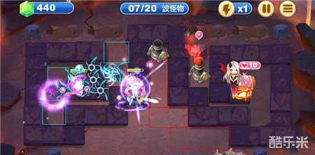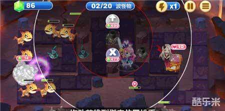 4:清理障碍,在远处建立加农,近处建立雪球减速,概念如上图(蓝色为雪球,红色为加农,如果怪物突破防线,可用技能压制,或者在龙女附近建雪球)
