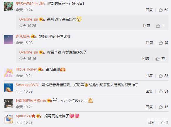 从上图的言论中可以看出,957的妈妈是真的很懂LOL啊!当然这段言论发表自2018年11月4日,也就是IG刚刚拿下S8全球总决赛世界冠军的第二天,相信957的妈妈也是看了S8总决赛之后,得出了如此的感想,而且分析的头头是道,虽然语气就是那种父母的语气,但是道理都是对的,对版本的理解还是很到位的。而且看到957的妈妈这么支持他的职业道路,不少粉丝也感慨:妈妈真的太棒了,看得懂游戏真的太厉害了。