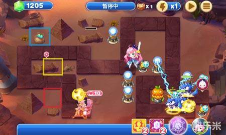 6:在上图两个拐点建立风车,等级无所谓勒啦,并且开始清理后方障碍和钱袋,优先最短距离打掉钱袋。