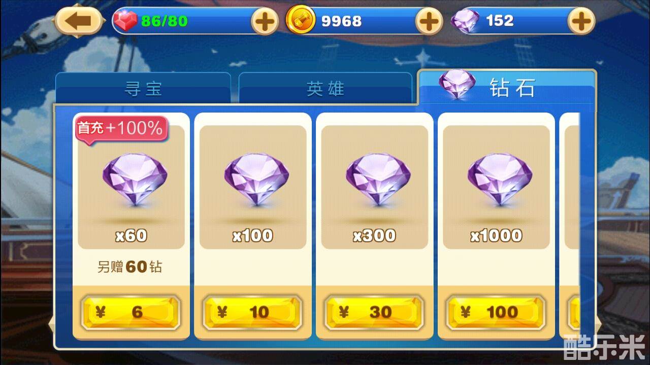 【钻石】:这个就用处大了,买爱心、英雄、买金币、抽奖等都离不开它。