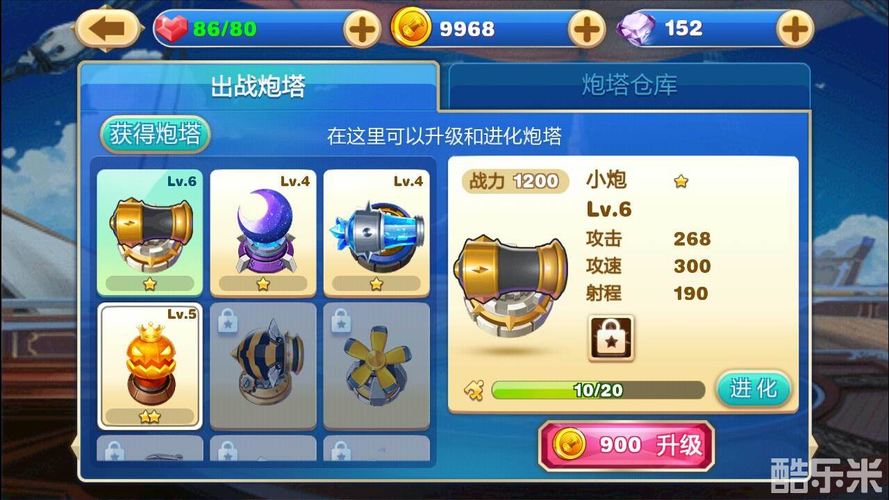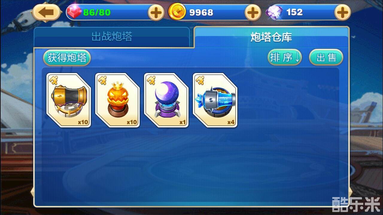 【炮塔】:这里是你培养炮塔的地方,在这里你可以查看、合成、进化、购买、出售你的炮塔。