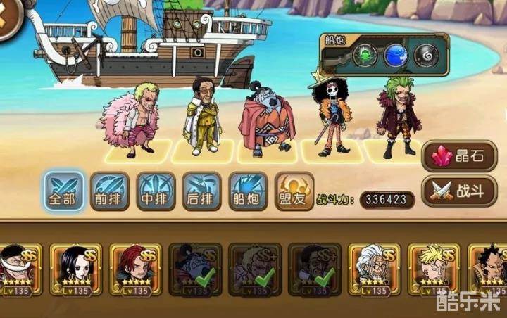 强力的战撸阵容,每位伙伴都有独特的一套对抗藤虎的击倒与压制,巴尔托洛梅奥搭配能量藤虎开场快速打出第一波控制,黄猿后手减能再控,白胡子与布鲁克站桩输出。