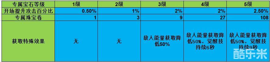 5级:开场提升黄猿10%法攻,2.5%最大生命转为物甲和法抗,黄猿造成的伤害令敌人获得能量降低50%,使觉醒技持续9秒