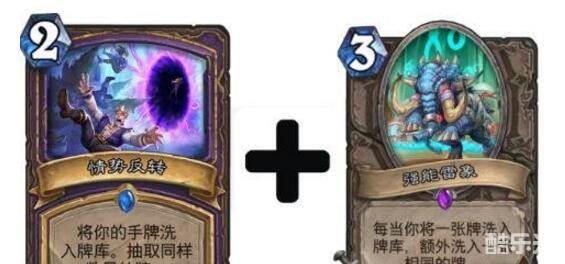 术士的2费法术情势反转,将你的手牌洗进牌库抽取相同数量的卡牌。达成无限的套路,你需要两张情势反转和两张强能雷象。手上留一个雷象,下一个雷象,使用情势反转之后,你的牌库就能达到无限了。无限的套路一直都是很快乐的(虽然有时候比较影响游戏体验),但是术士总算不用担心自己抽牌抽死了,也算是向新的娱乐套路靠近了一步。最重要的是这样洗了一次之后你还可以开始挖宝,和挖宝战一个道理。不过术士真的没有什么回复能力了,新版本一味卖血很容易就会GG。